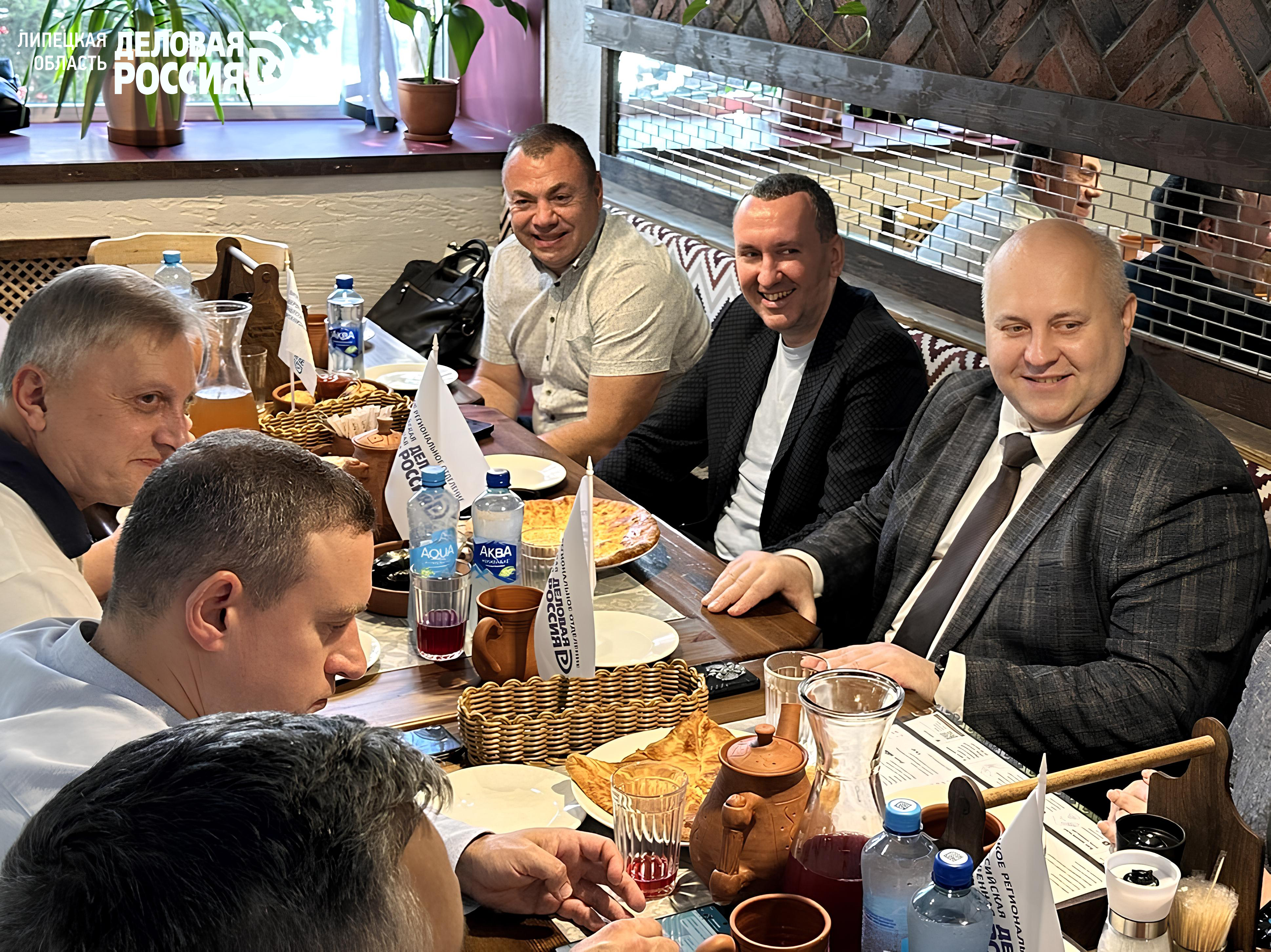 04.07.2025г. по инициативе руководителя Совета Липецкого регионального отделения Общероссийской общественной организации «Деловая Россия» Екатерины Белокопытовой в кафе «Старик Хинкалыч» состоялась деловая встреча с Уполномоченным по защите прав предпринимателей Липецкой области Евгением Боровских.